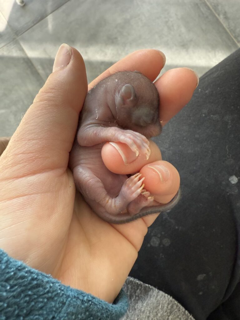 Henry kam gemeinsam mit seinen Geschwistern zu mir, nachdem die Mutter verunglückt war und es leider nicht geschafft hatte. Die drei kleinen Eichhörnchen starteten ihr Leben bei mir mit gerade einmal 11 Gramm Körpergewicht – kaum größer als ein Daumen. Man könnte fast sagen, sie wurden in meinen vier Wänden geboren.